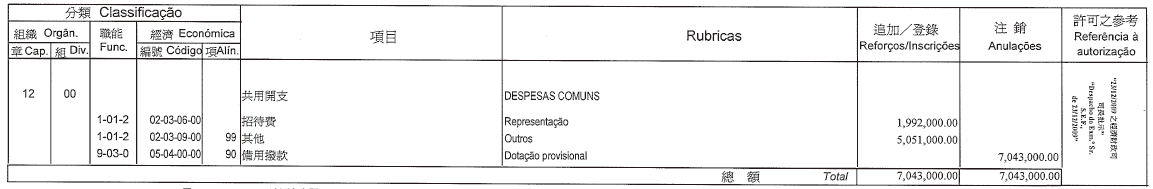 | 04 | 04 | 00 | 00 | 04 | Escritórios de representação | 150,000.00 | |