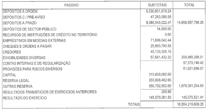 O Relatório dos Auditores Externos, tido em devida conta pelo Fiscal Único, refere que os documentos de prestação de contas apresentados evidenciam de forma verdadeira e apropriada a situação financeira do Balanço em 31 de Dezembro de 2009, bem como os resultados das operações referentes ao exercício findo naquela data, com observância dos princípios contabilísticos da actividade Bancária.