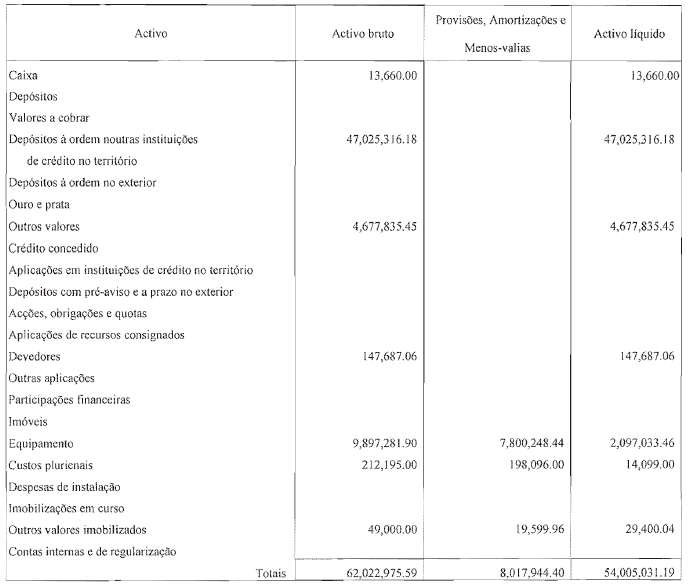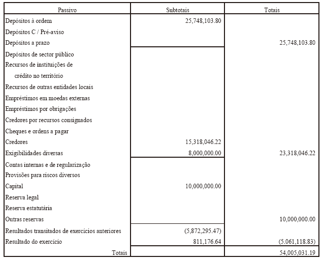 O balanço, a demonstração de resultados e a conta de exploração e lucros e perdas deste Banco, respeitantes ao exercício do ano findo em 31 de Dezembro de 2009, foram elaborados nos termos da lei bancária e auditados pela KPMG e segundo o nosso Parecer, as mesmas corresponderam às regras de contabilidade bancária, sendo, portanto, documentos suficientes para mostrar a situação financeira real deste Banco até 31 de Dezembro de 2009, e o lucro apurado do exercício que terminou nesta data.