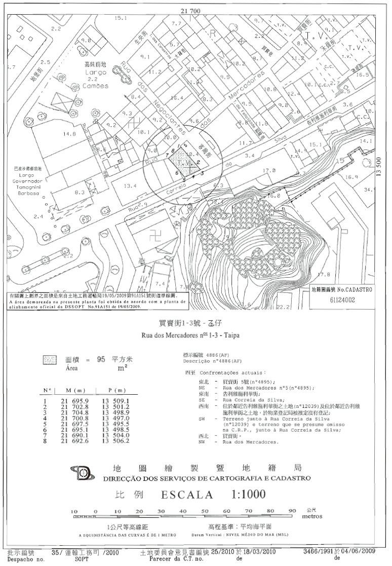 六、合同標的土地的面積為95平方米,在地圖繪製暨地籍局於二零零九年六月四日發出的第3466/1991號地籍圖中定界。