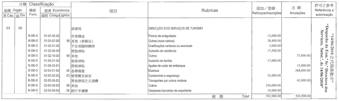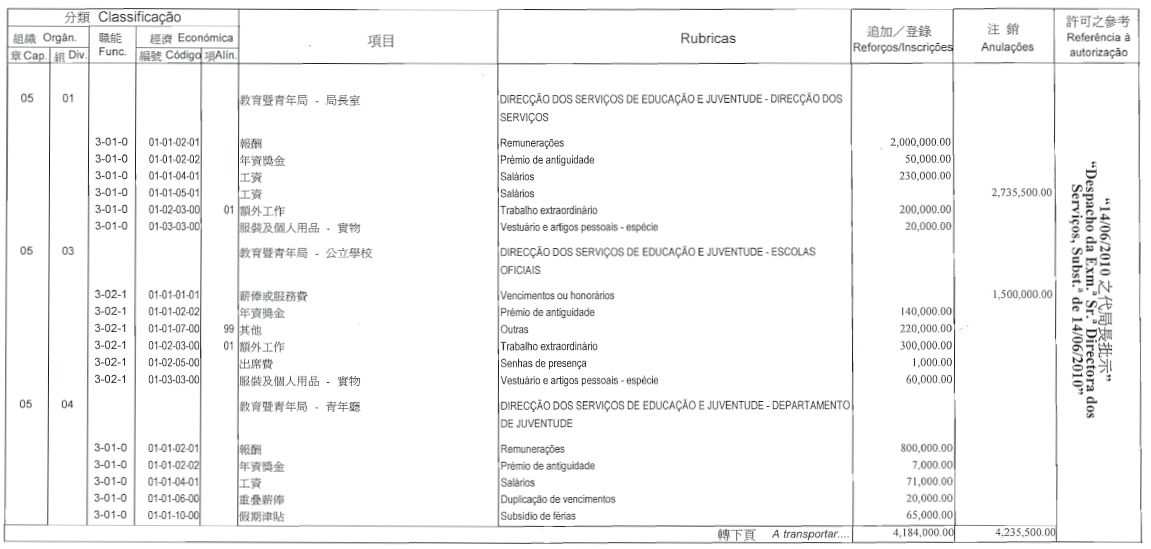 根據第28/2009號行政法規修訂的第6/2006號行政法規第四十三條的規定,公佈經運輸工務司司長於二零一零年六月十日批示核准之民航局二零一零年財政年度本身預算第四次修改: