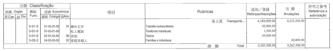 | Arnaldo Jorge da Silva | 首席行政文員 | 1 | 特級行政技術助理員 | 1 | a) |