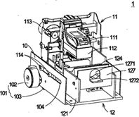 Resumo: 本發明是一種可攜式彩繪打印裝置,包含:本體,具有驅動組件;打印組件受驅動組件帶動而於本體上移動,且包含打印材料匣;定位機構,設置於本體上, 具有承載板件、調整部件、支撐部件、定位擋板以及位移檢測組件,承載板件承載指甲打印物並放置於支撐部件上,調整部件帶動支撐部件進行垂直位移,使指甲打印物呈現水平狀態 ,定位擋板相應指甲打印物的頂推而進行位移,使位移檢測組件測得定位擋板的位移距離,以使打印組件定位指甲打印物的位置;打印材料匣相對應於指甲打印物設置,使得指甲打印 物定位後,打印材料匣得以對指甲打印物進行打印。