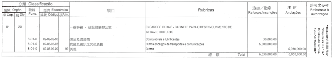 | 6121 | Instituto de Estudos de Macau | 5,000,000.00 | ||