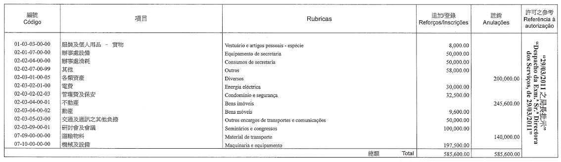 摘錄自行政法務司司長於二零一一年三月一日作出的批示: