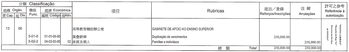根據經十二月二十二日第39/2004號行政法規及十二月十八日第35/2009號行政法規修改的三月六日第19/2000號行政法規第十三條第一款、終審法院院長第3/2000號批示第一款第六項及第七項、八月三日第14/2009號法律第十三條第二款(二)項,以及現行的《澳門公共行政工作人員通則》第二十七條及第二十八條之規定,本辦公室第二職階輕型車輛司機李偉光之散位合同獲准續期一年及更改為第三職階(薪俸點170),由二零一一年四月十七日起生效。