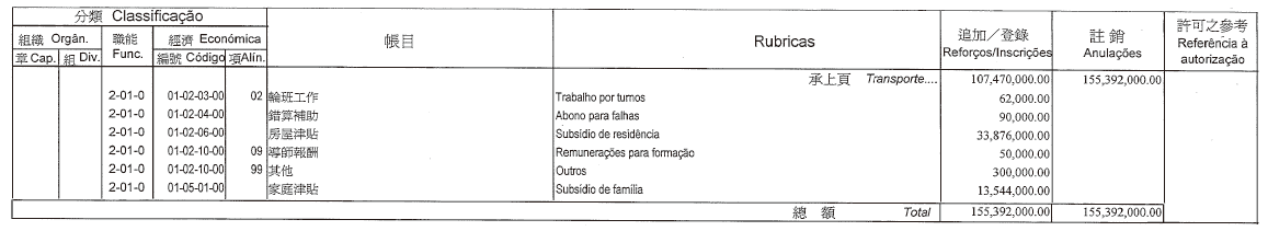 | 01 | 01 | 01 | 00 | 00 | 法律通過之編制人員 | |||