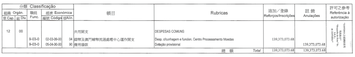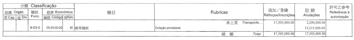 | 05 | 00 | 00 | 00 | 00 | 其他經常開支 | ¡@ | ¡@ |