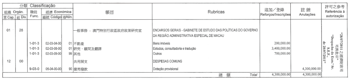 | 02 | 03 | 08 | 00 | 01 | 研究、顧問及翻譯 | 6,000,000.00 | ¡@ |