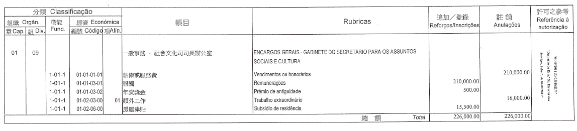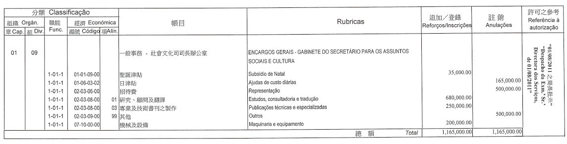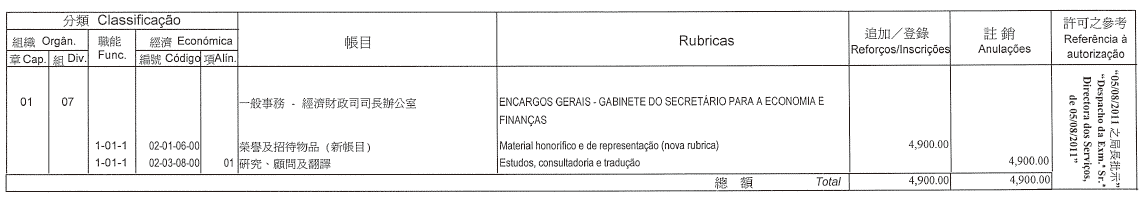 摘錄自行政法務司司長於二零一一年七月八日作出的批示: