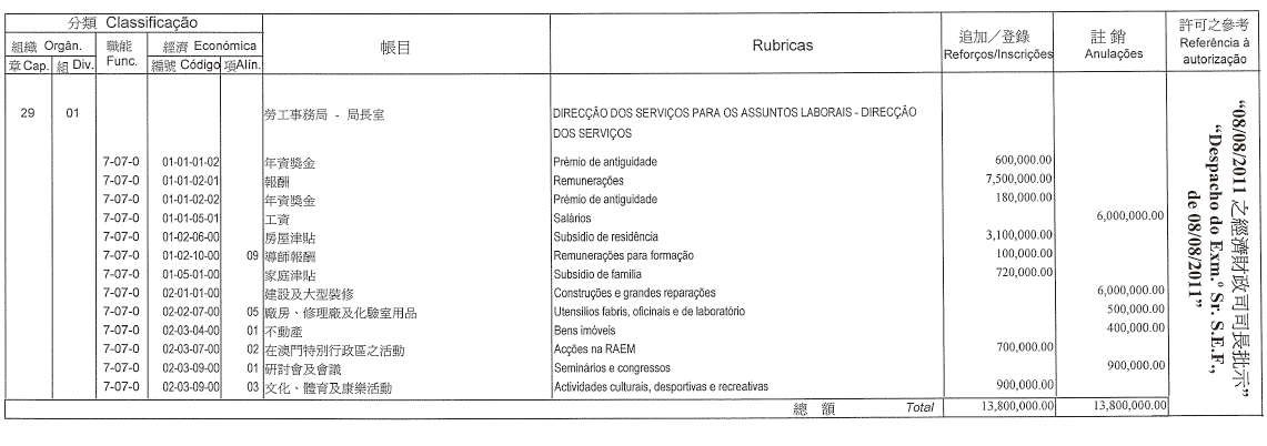按照行政法務司司長於二零一一年八月五日發出的批示: