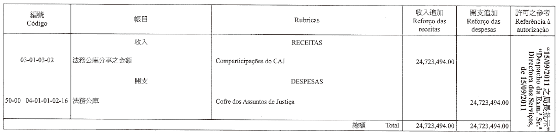 De acordo com o artigo 41.º do Regulamento Administrativo n.º 6/2006, republicado nos termos do Despacho do Chefe do Executivo n.º 426/2009, publica-se a 2.ª alteração orçamental do Fundo de Desenvolvimento Educativo, referente ao ano económico de 2011, autorizada por despacho do Ex.mo Senhor Secretário para os Assuntos Sociais e Cultura, de 19 de Setembro do mesmo ano: