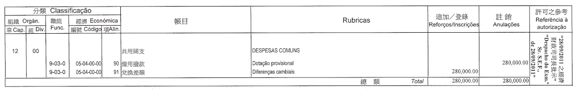 | 1-01-1 | 05 | 04 | 00 | 00 | 90 | Dotação provisional | 100,000.00 | |