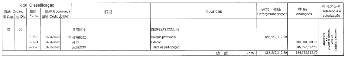 根據第426/2009號行政長官批示重新公佈的第6/2006號行政法規第四十一條之規定,公佈二零一一年財政年度體育發展基金預算之第七次修改,有關修改是經由經濟財政司司長二零一一年十月十二日的批示許可: