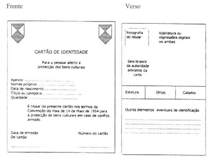2. Essas pessoas são portadoras de um cartão de identidade especial munido do sinal distintivo. Esse cartão refere, pelo menos, o apelido e os nomes próprios, a data de nascimento, o título ou categoria, e a função do titular. O cartão contém a fotografia do titular bem como a sua assinatura ou as suas impressões digitais, ou ambas. O cartão tem aposto o selo branco das autoridades competentes.