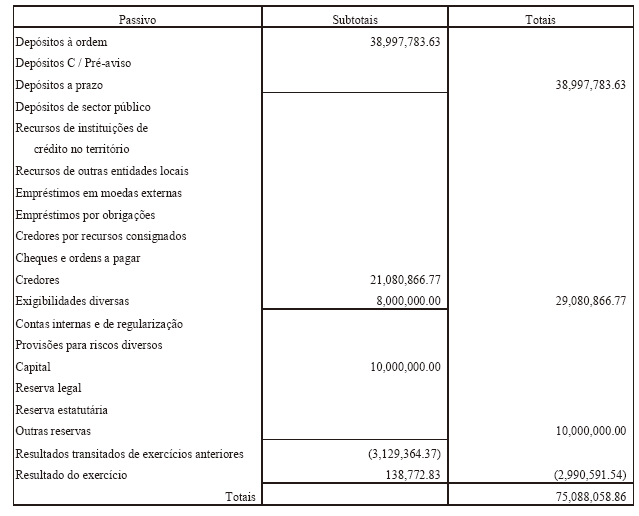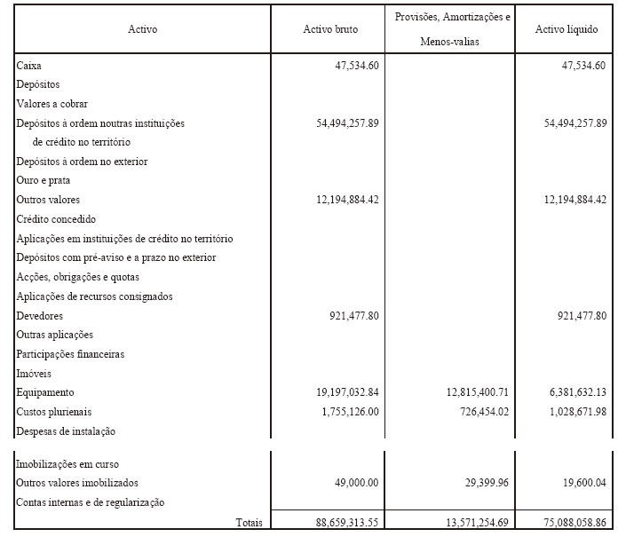Depois de examinados os documentos entregues a este escritório, para efeito de emissão do parecer, conclui-se que os referidos documentos reflectem, de forma clara, não só a situação patrimonial, mas também a situação financeira e económica do Banco.