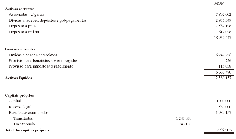 Depois de examinados os documentos entregues a este escritório, para efeito de emissão do parecer, conclui-se que os referidos documentos reflectem, de forma clara, não só a situação patrimonial, mas também a situação financeira e económica da referida Sociedade.
