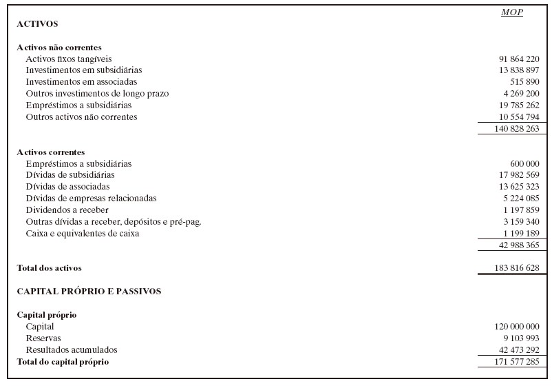 Auditámos as demonstrações financeiras da MACAUPORT — Sociedade de Administração de Portos, S.A., referentes ao exercício findo em 31 de Dezembro de 2011, em conformidade com as Normas de Auditoria e Normas Técnicas de Auditoria vigentes em Macau, R.A.E., e sobre essas demonstrações financeiras expressámos a nossa opinião, sem reservas, no nosso relatório datado de 14 de Março de 2012.