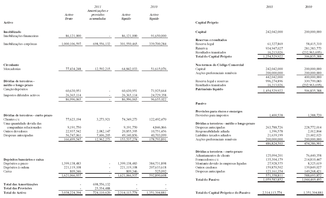 Balanço anual em 31 de Dezembro de 2011