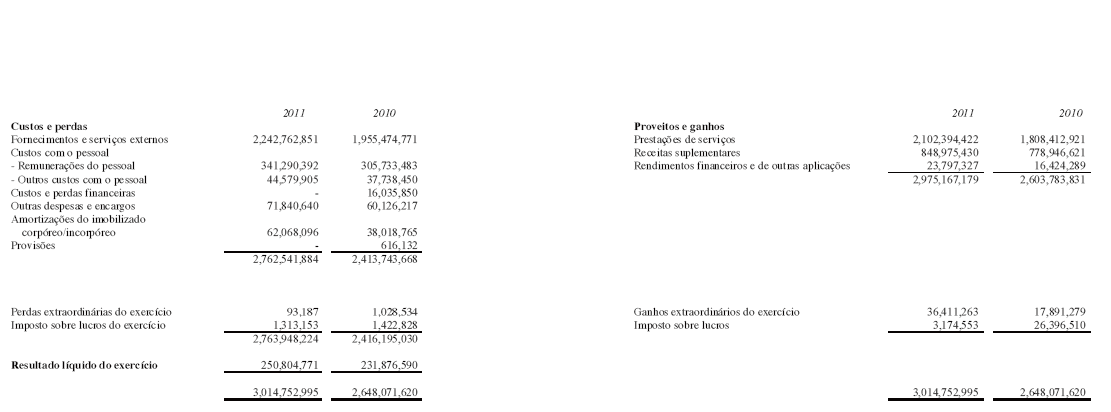 Demonstração de resultados do exercício de 2011
