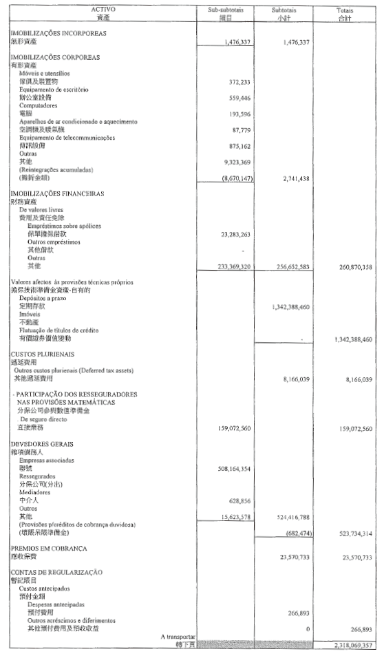 上述已審核的財務報表由二零一一年十二月三十一日的資產負債表以及截至該日止年度的損益表、總公司往來及資本公積變動表和現金流量表組成,亦包括重大會計政策的摘要和解釋附註。