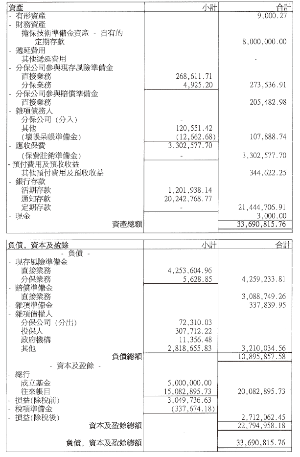 營業表(人壽保險公司)