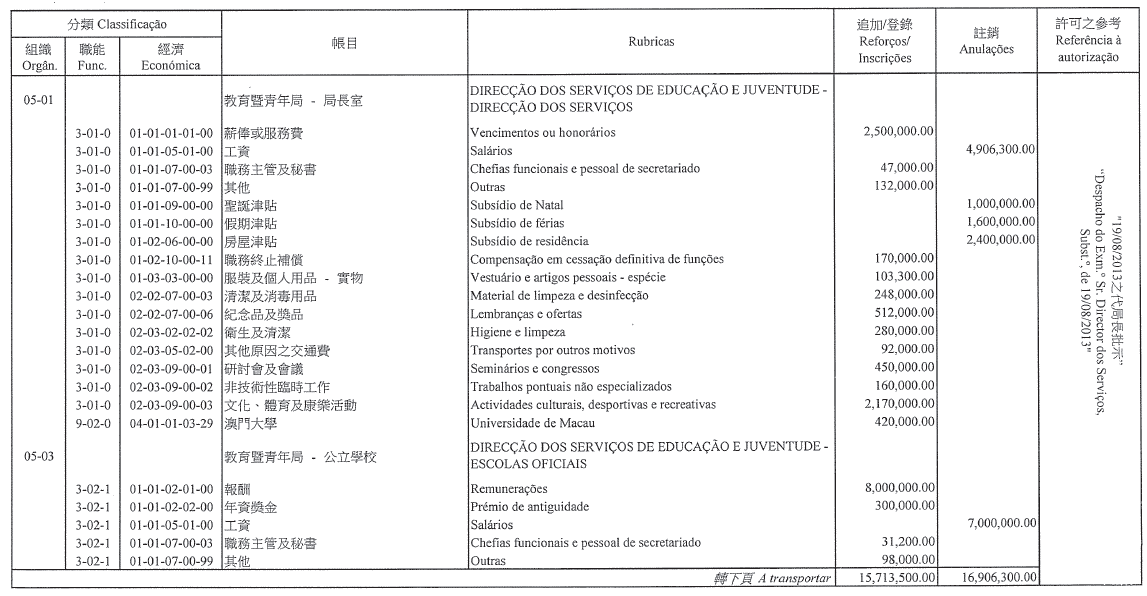 | 職能 | ¸gÀÙ | 開支名稱 | ||||||