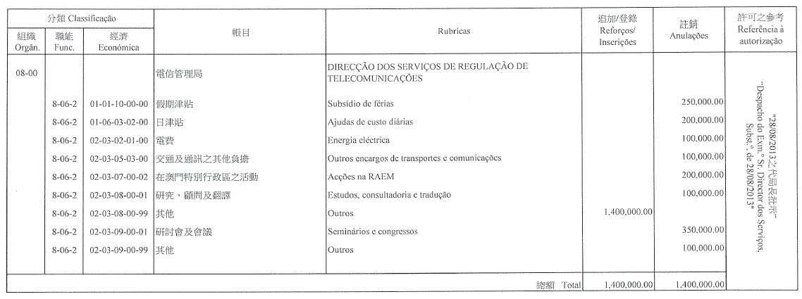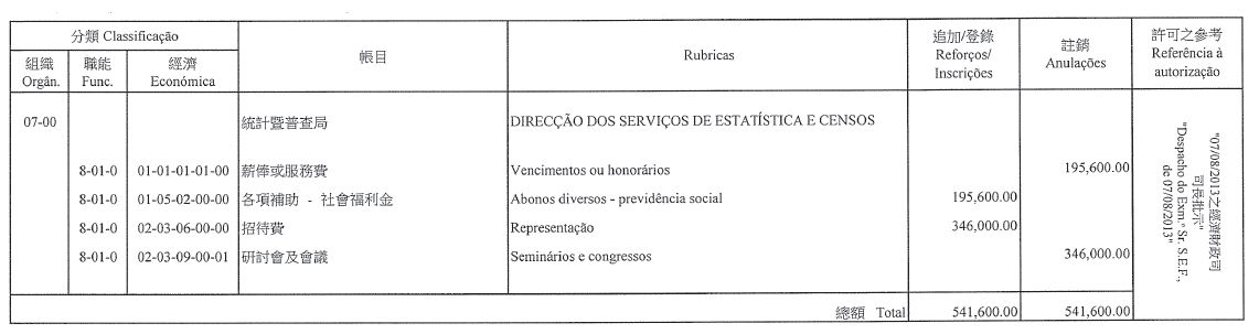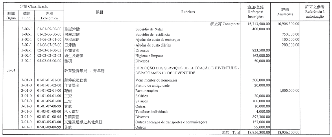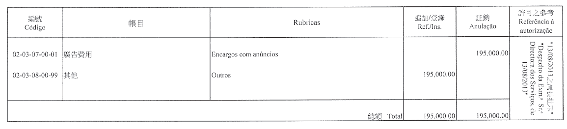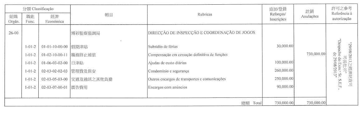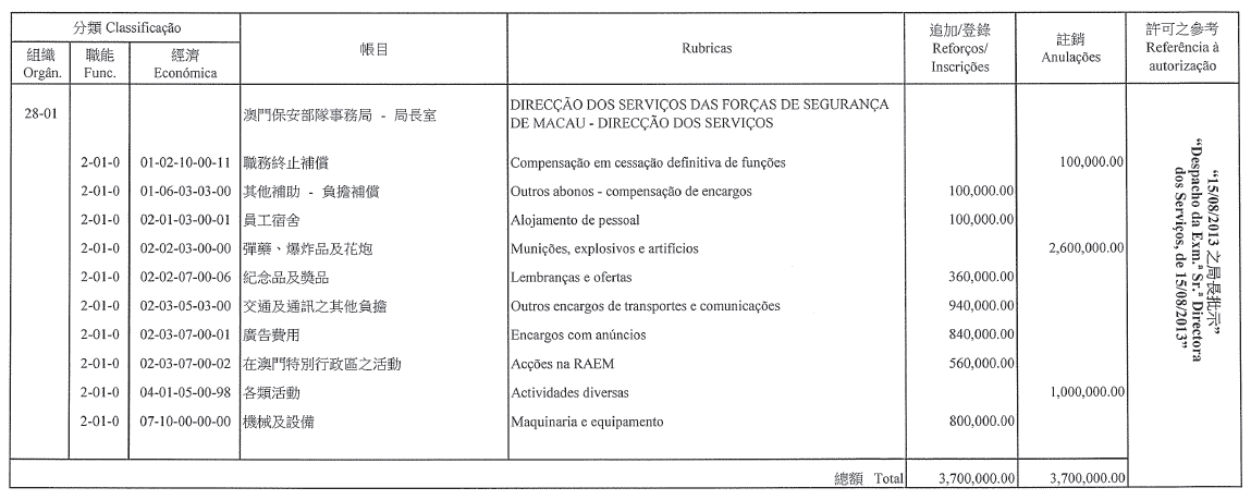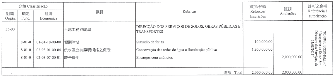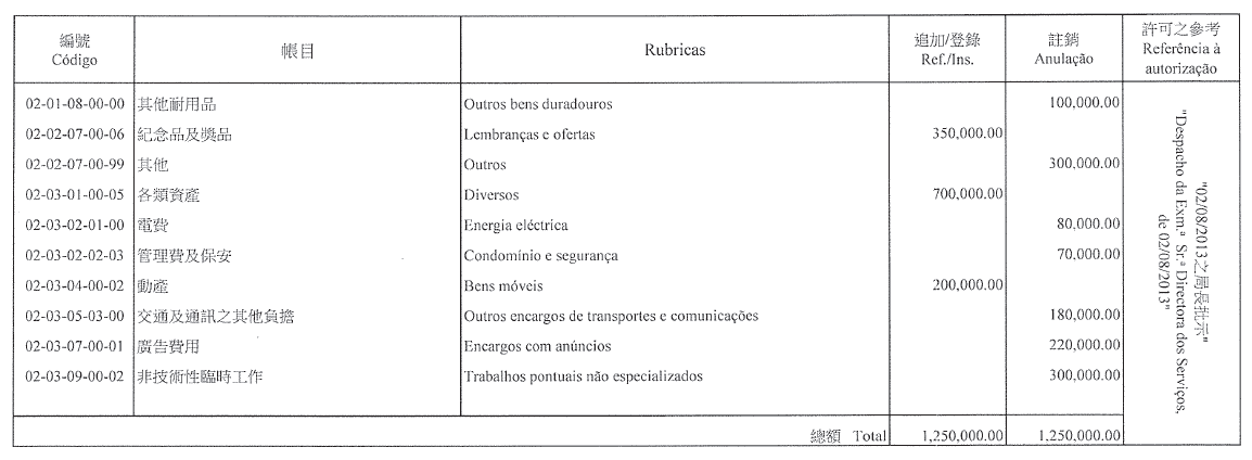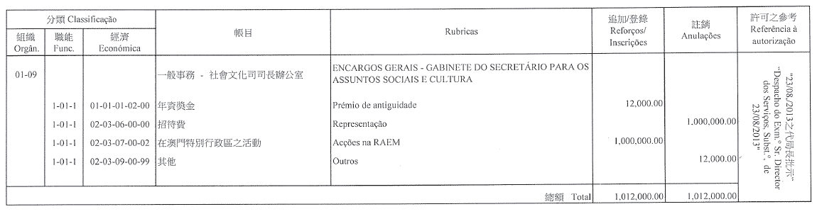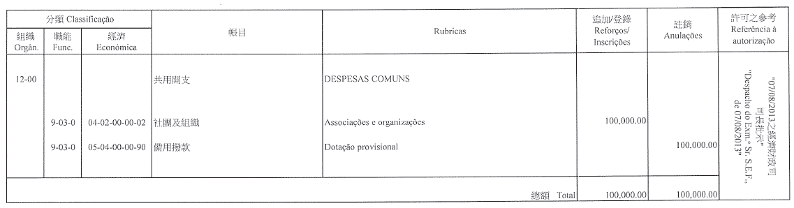 | 02 | 03 | 07 | 00 | 02 | 在澳門特別行政區之活動 | 1,860,000 | |