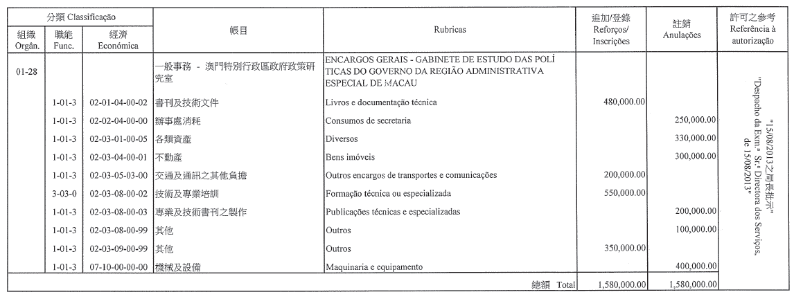 | 3-03-0 | 02 | 03 | 08 | 00 | 01 | 研究、顧問及翻譯 | 550,000.00 | |