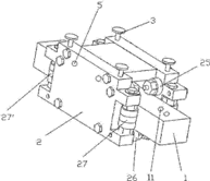 [57] Resumo : 本發明公開了一種可調式矩形導軌副裝置,包括矩形導軌,所述矩形導軌上活動套裝有滑塊,滑塊內側設置有與導軌相接觸的滾柱,所述滑塊由底板、頂板以及左、右側板圍合而成,所述滑塊上部的前後兩端內側可調式安裝有水平放置的前、後上滾柱,所述滑塊下部的兩端內側固定安裝有水平放置的前、後下滾柱,所述滑塊中部的左側前後兩端可調式安裝有垂直放置的前、後左滾柱,所述滑塊中部的右側前後兩端固定安裝有垂直放置的前、後右滾柱;該設計可以根據導軌大小來及時調節軌道的大小,有效保證了導軌副的定位精度和傳動平穩性,從而滿足了導軌使用時的高精度要求。