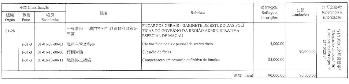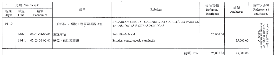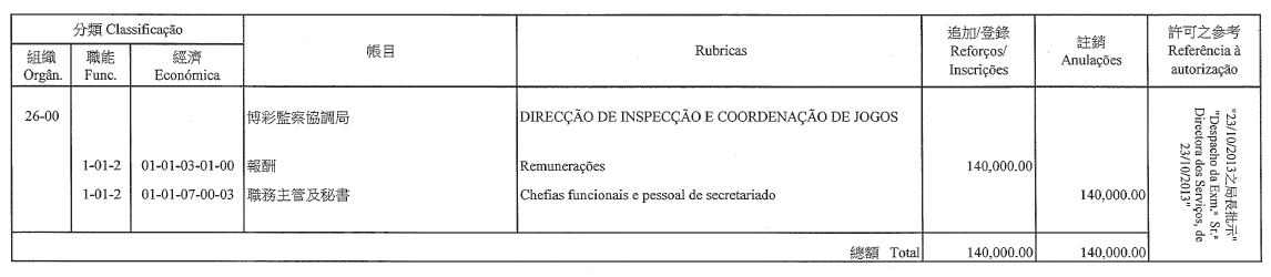 根據第11/1999號法律第二十五條,第12/2007號行政法規第六條及第三十一條第一款,配合第14/1999號行政法規第十八條第一款、第五款及第十九條第七款的規定,梁翠雯擔任審計長辦公室秘書的定期委任,自二零一三年十二月二十日起續期一年。