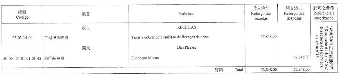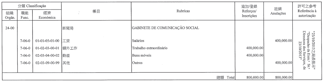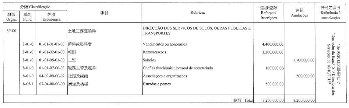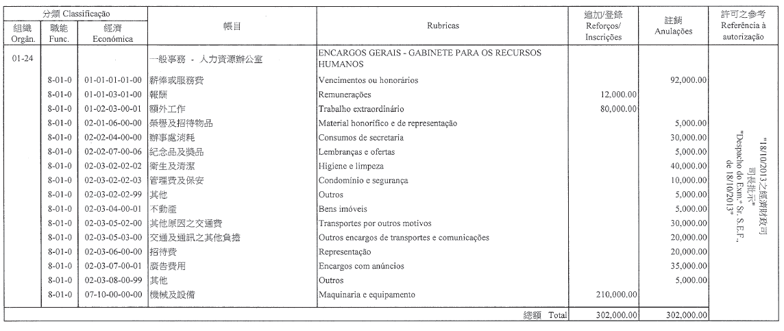 根據刊登於二零零九年十一月九日第四十五期《澳門特別行政區公報》第一組的第426/2009號行政長官批示重新公佈的第6/2006號行政法規第四十一條,以及第347/2006號行政長官批示附件I第八款的規定,現刊登有關二零一三年度澳門大賽車獨立預算之第七次修改,該修改獲社會文化司司長在二零一三年十一月十五日批示核准: