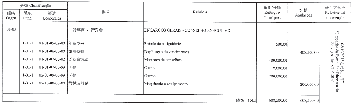 根據第11/1999號法律第二十五條,第12/2007號行政法規第十四條、第十五條、第二十八條及第二十九條,以及第26/2009號行政法規第八條的規定,並因具備適當經驗及專業能力履行職務,梁煥庚擔任審計局局長的定期委任,自二零一三年十二月三日起續期一年。