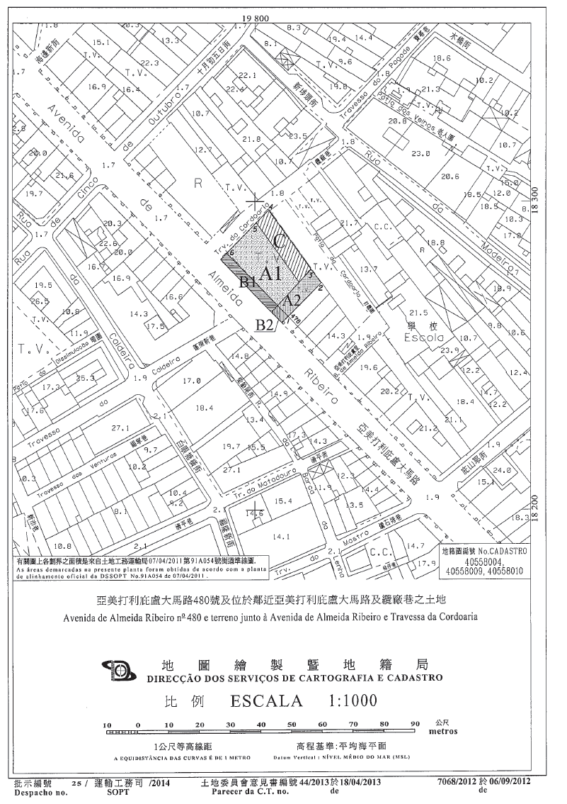 1. 為統一位於澳門半島亞美打利庇盧大馬路,其上建有480號樓宇及鄰近該大馬路及纜廠巷,在地圖繪製暨地籍局於二零一二年九月六日發出的第7068/2012號地籍圖中以字母“A1”、 “A2”、“B1”、“B2”及“C”定界及標示,面積分別為280平方米、80平方米、69平方米、14平方米及134平方米的五幅地塊的法律制度,本合同的標的為: