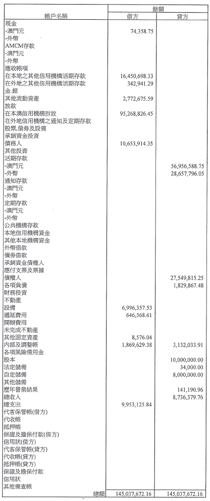 經審閱交予本獨任監事編制意見書的文件後,認為該等文件清楚反映出銀行的財產狀況及財政和經濟狀況。