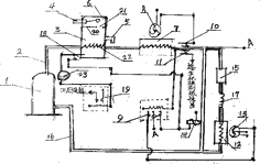 [57] 摘要 : 空調機既有高效率的冷氣輸出,同時又免費得到熱水應用,實現了環保節能,但是冬天環境溫度低時,空調機熱量輸出顯著低下,甚至無法製熱,本實用新型正好解決此關鍵技術問題,利用一個安裝在室外機散熱盤管輸出端的溫度開關,控制一個冷媒電磁閥,控制冷媒走向,(短路)使系統冷媒溫度急升,達到冬天空調機熱泵形式製熱的目的,同時在室外機散熱器散熱盤管輸出端安裝一個溫度開關控制散熱風扇,使系統冷媒製冷、製熱時溫度適中,發揮空調機最大的效能,又利用一個溫度開關控制熱交換水箱兼貯水箱的溫度,實行恆溫節能。熱交換貯水箱實行低壓式設計,裝於高位、熱水自然流注方式,是簡單可靠實用空調機。