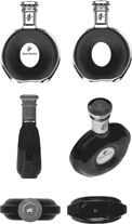 [571] °Ó¼Ð´yz : A marca consiste na representação tridimensional de uma garrafa de vidro incolor transparente, caracterizada por um corpo toroidal, sem furos, com uma área oval plana no centro de cada uma das faces, cada uma dessas faces onde será colocada um rótulo, e por uma flange plana de vidro sólido transparente em cada um dos lados. Um desenho de um centauro está gravado na parte superior da tampa e no gargalo, e um outro está impresso no rótulo frontal acima do nome RÉMY MARTIN.