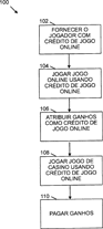 [57] ºKn : Um método de converter créditos de jogo online em créditos de jogo de casino inclui providenciar um jogador com créditos de jogo online. Um jogo online é jogado usando créditos de jogo online. Os ganhos são atribuídos do jogo online como créditos de jogo de casino. Um jogo de casino é jogado usando créditos de jogo de casino. Os ganhos serão pagos do jogo de casino.