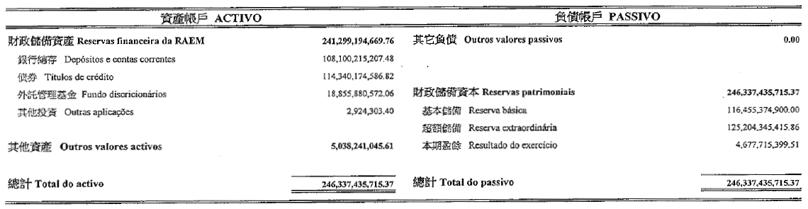 Reservas financeiras da RAEM |
