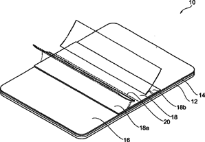 [57] ºKn : ¥»µo©ú¬O¯A¤Î®e©ö¶K¨ì¥Ö½§¤Wªº¶K¾¯¡C¥»µo©úªº¶K¾¯10ªº¯S¼x¬O¨ã³Æ¤ä«ùÅé12¡B³]¸m©ó¸Ó¤ä«ùÅé¨ä¤¤¤@±ªºÂH着¾¯¼h14¡B¥iéÂ÷¦aÂH着¦b¸ÓÂH着¾¯¼hªºéÂ÷Á¡¤ù16¡B§Î¦¨©óéÂ÷Á¡¤ù¥B¨Ï¸ÓéÂ÷Á¡¤ù®e©öÂ_¶}ªº®z¤Æ³¡20¡A¶i¦Ó©ó¸ÓéÂ÷Á¡¤ù¤W¡AºK¨ú¤ù§Î¦¨Á¡¤ù18¥HÂл\«ez®z¤Æ³¡20ªº¤è¦¡±µ¦X¡A¸Ó±µ¦X³¡¤À22¥H¥~ªººK¨ú¤ù§Î¦¨Á¡¤ùªº¤@³¡¤À§@¬°ºK¨ú¤ù18a¡B18bµo´§¥\¯à¡AºK¨ú¤ù§Î¦¨Á¡¤ù¥ç©ó¹ïÀ³©óéÂ÷Á¡¤ùªº®z¤Æ³¡ªº¦ì¸m¤W¡A§Î¦¨®e©öÂ_¶}¸ÓéÂ÷Á¡¤ùªº®z¤Æ³¡20¡C