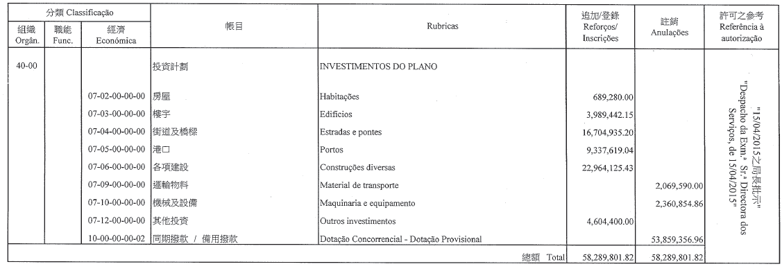 — De acordo com o disposto pelo artigo 43.º do Regulamento Administrativo n.º 6/2006, na redacção que lhe foi conferida pelo Regulamento Administrativo n.º 28/2009, publicam-se as seguintes transferências de verbas (OR/2015), autorizadas nos termos do n.º 2 do Despacho do Chefe do Executivo n.º 347/2006: