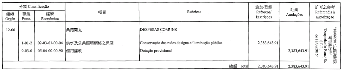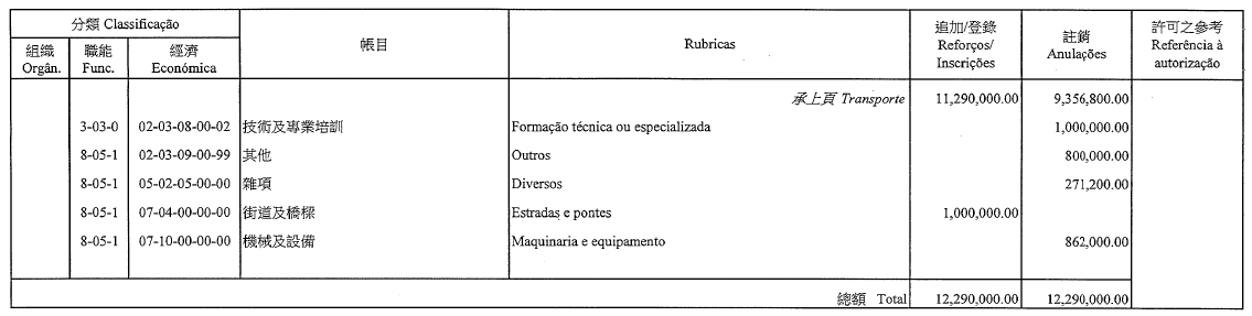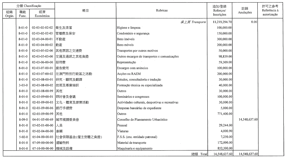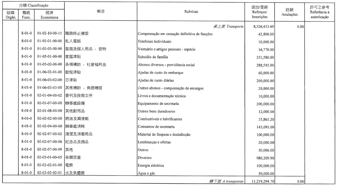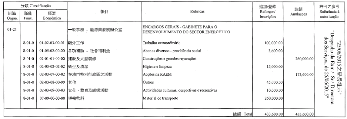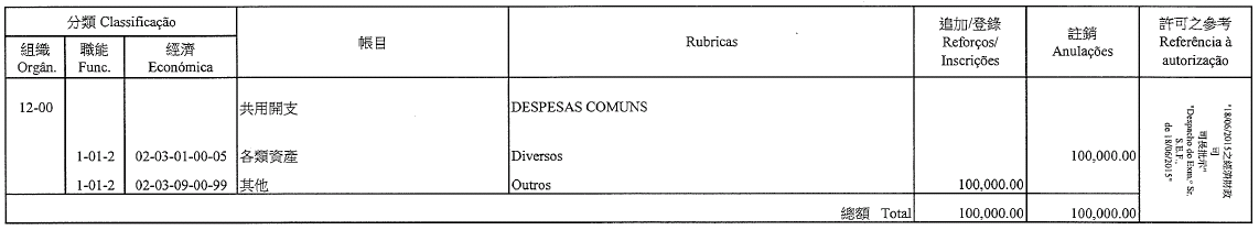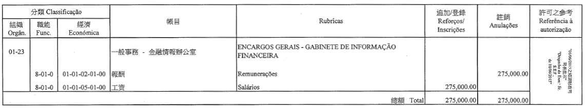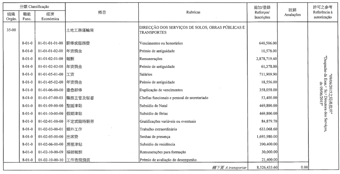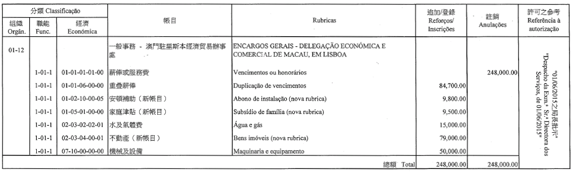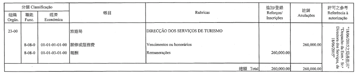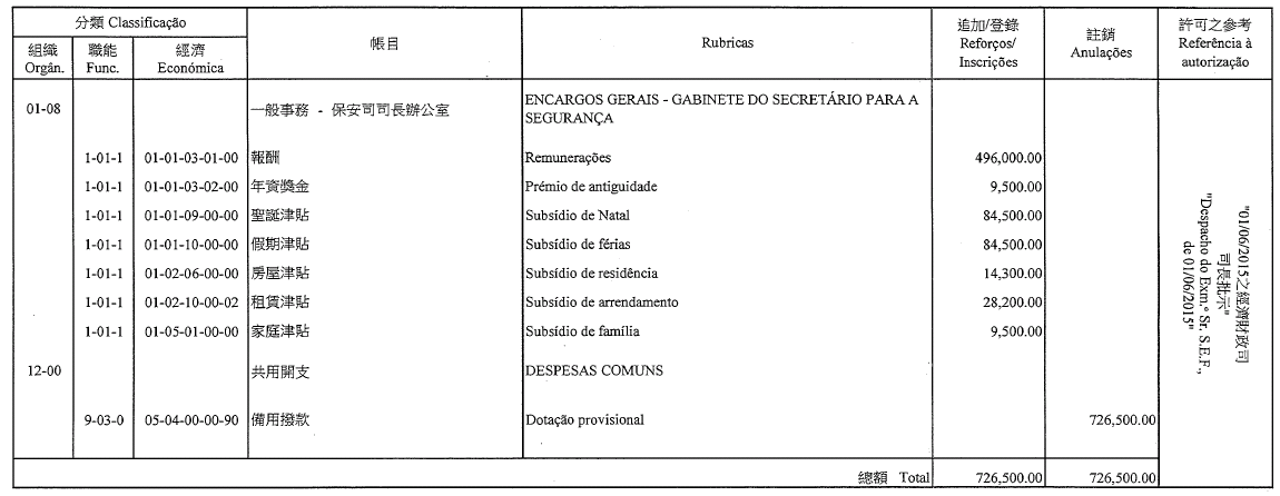 Chu Pak Im, como motorista de ligeiros, 7.º escalão, até 22 de Agosto de 2015;
