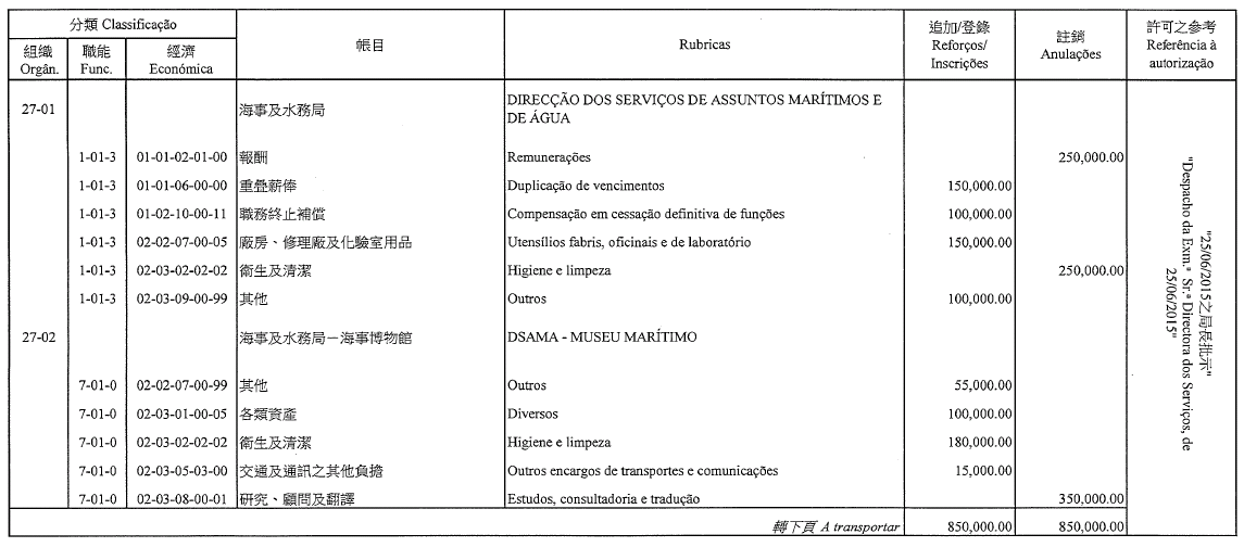 Gabinete do Secretário para a Economia e Finanças, aos 13 de Julho de 2015. — A Chefe do Gabinete, Lok Kit Sim.