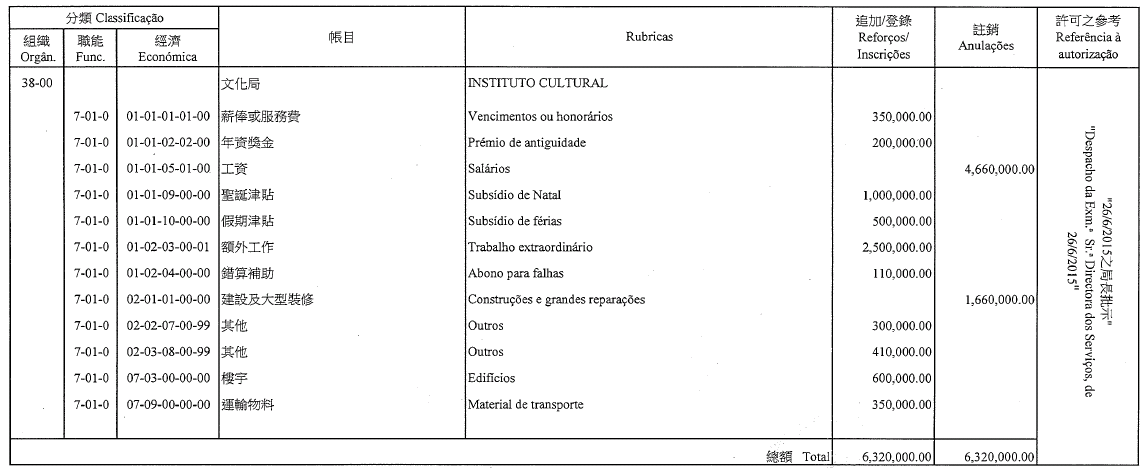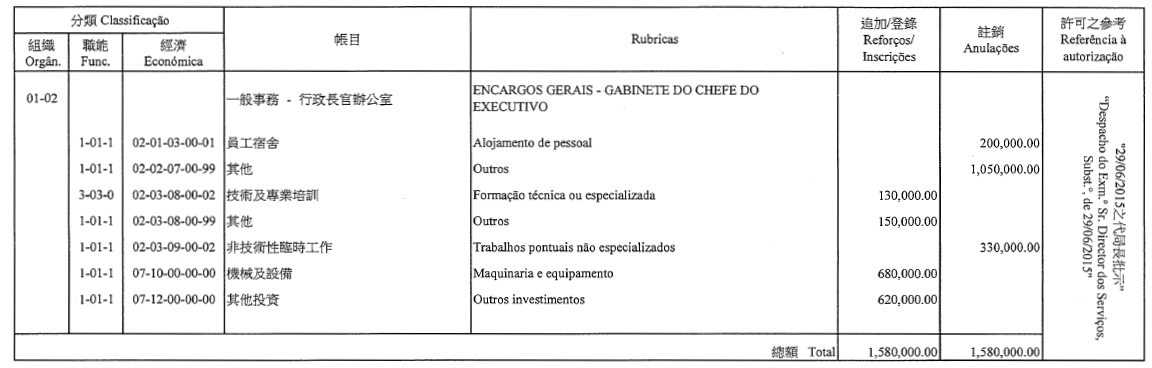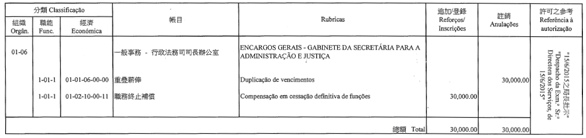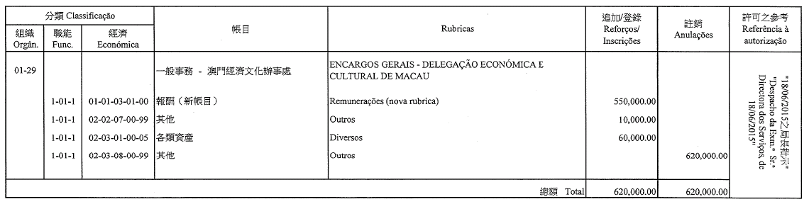 Por despacho de S. Ex.ª o Chefe do Executivo, de 30 de Junho de 2015: