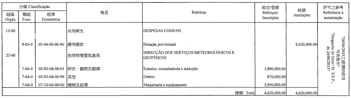 Direcção dos Serviços Meteorológicos e Geofísicos, aos 16 de Julho de 2015. — A Directora dos Serviços, substituta, Leong Ka Cheng.