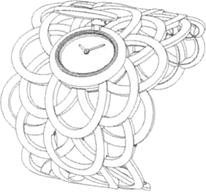 [57] Resumo : A novidade reside no formato geral do desenho do relógio que é caracterizado por uma caixa de relógio redonda à qual a pulseira está ligada através de dois elementos em forma de coração.