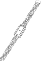 [57] Resumo : A novidade reside no formato geral do relógio, que é caracterizado por uma caixa de relógio octogonal com uma pulseira feita de elementos redondos e octogonais biselados.
