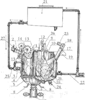 [57] Resumo : 一種富氧微乳化生物柴油的製作方法及裝置,裝置包括殼體,殼體內裝有垂直攪拌器,動力源帶動垂直攪拌器轉動,垂直攪拌器的中軸上裝有漿式平直攪拌漿或槳式折葉槳,垂直攪拌器的中軸下部安裝有渦輪或圓盤彎葉漿,殼體的頂部設置有一個以上的進料口,每個進料口均通過管道連接有一個定量加料設備,殼體下部設置有成品出料口,在殼體頂部設有富氧水供給口。該方法包括下述步驟:(1)、將粗生物柴油輸入上述的乳化生物柴油裝置內,啓動攪拌系統,加入國III標準柴油後,攪拌5min;(2)加入親水劑,攪拌1min~15min;(3)加入丁醇和異戊烷,繼續對混合液作不間接攪拌15min;(4)加入富氧水,再攪拌15min,待靜置一定時間觀察乳化油為清潔透明無分層後為成品。