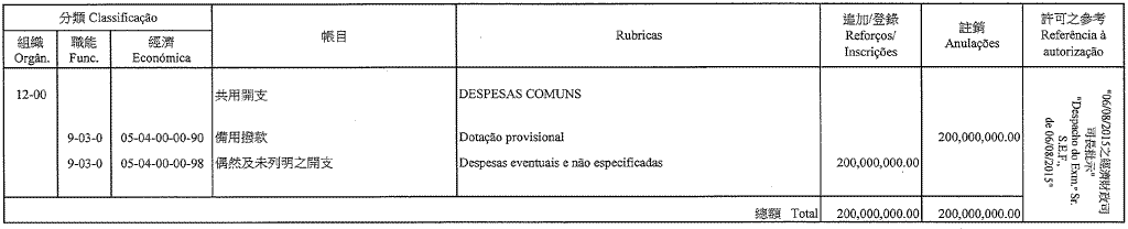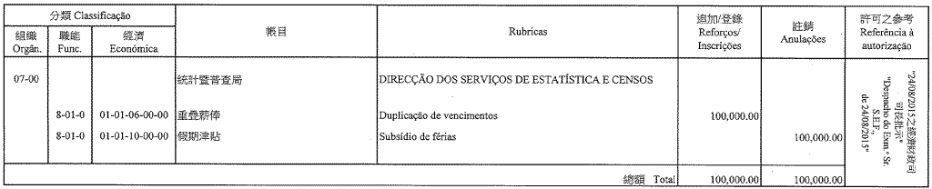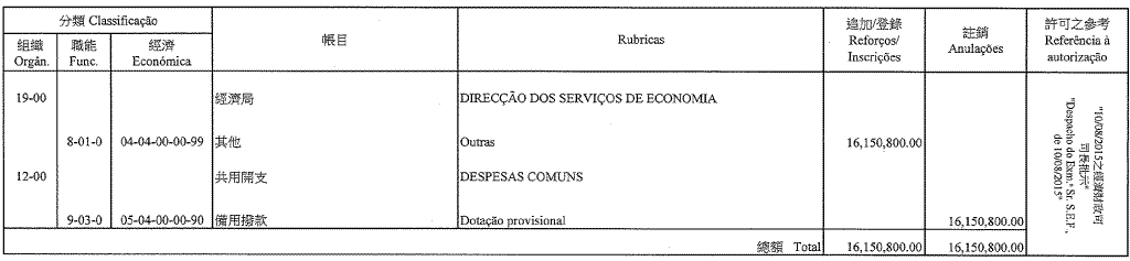 Gabinete do Secretário para a Economia e Finanças, aos 10 de Setembro de 2015. — A Chefe do Gabinete, Lok Kit Sim.