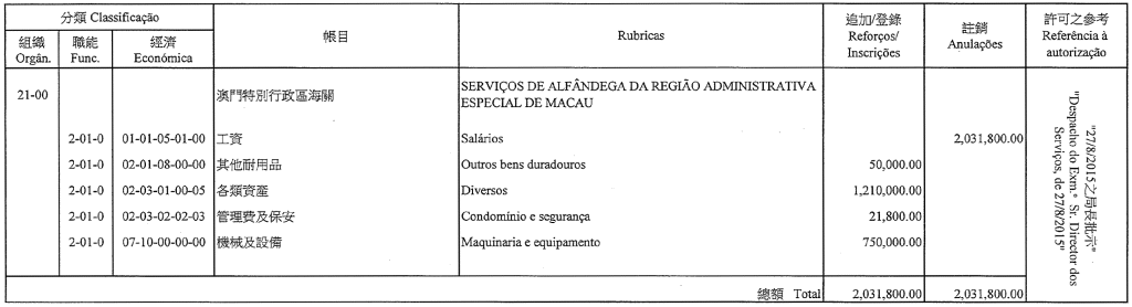Serviços de Alfândega, aos 14 de Setembro de 2015. — O Subdirector-geral, Sin Wun Kao.